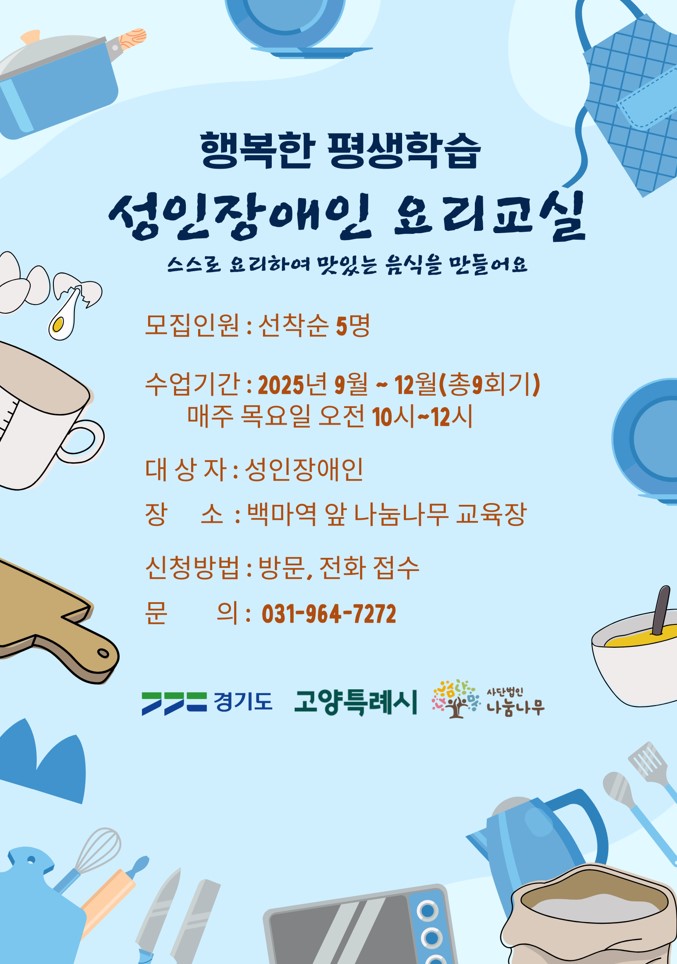 기본 요리법을 배우고 맛있는 음식을 만드는 프로그램(요리교실) 수강생을 모집합니다.