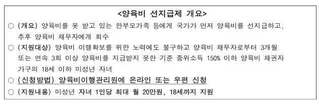 양육비 선지급제 본격 실시 안내