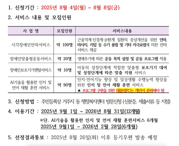 2025년 하반기 지역사회서비스투자사업 신규모집 공고
