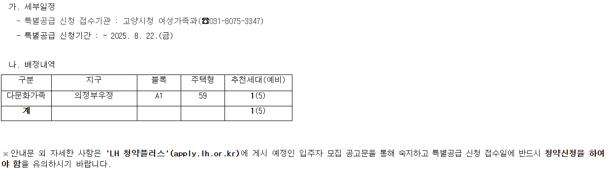 「의정부 우정 A-1블록」공공분양주택 다문화가족 특별공급