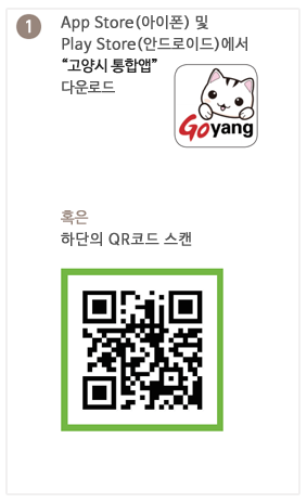 스마트폰으로 QR코드를 스캔하시면 고양누리길 앱으로 연결됩니다.