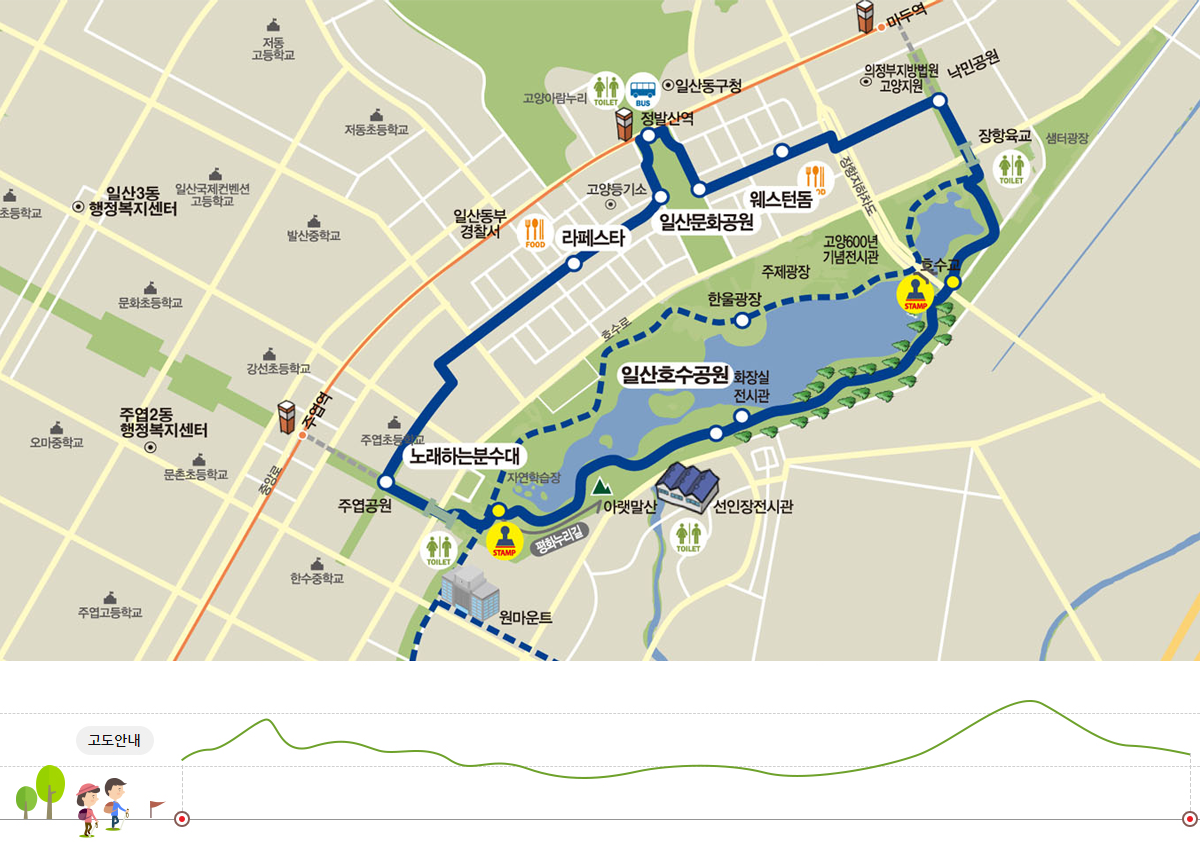 노래하는 분수대 ▶ 라페스타 ▶ 웨스턴돔 ▶ 일산호수공원