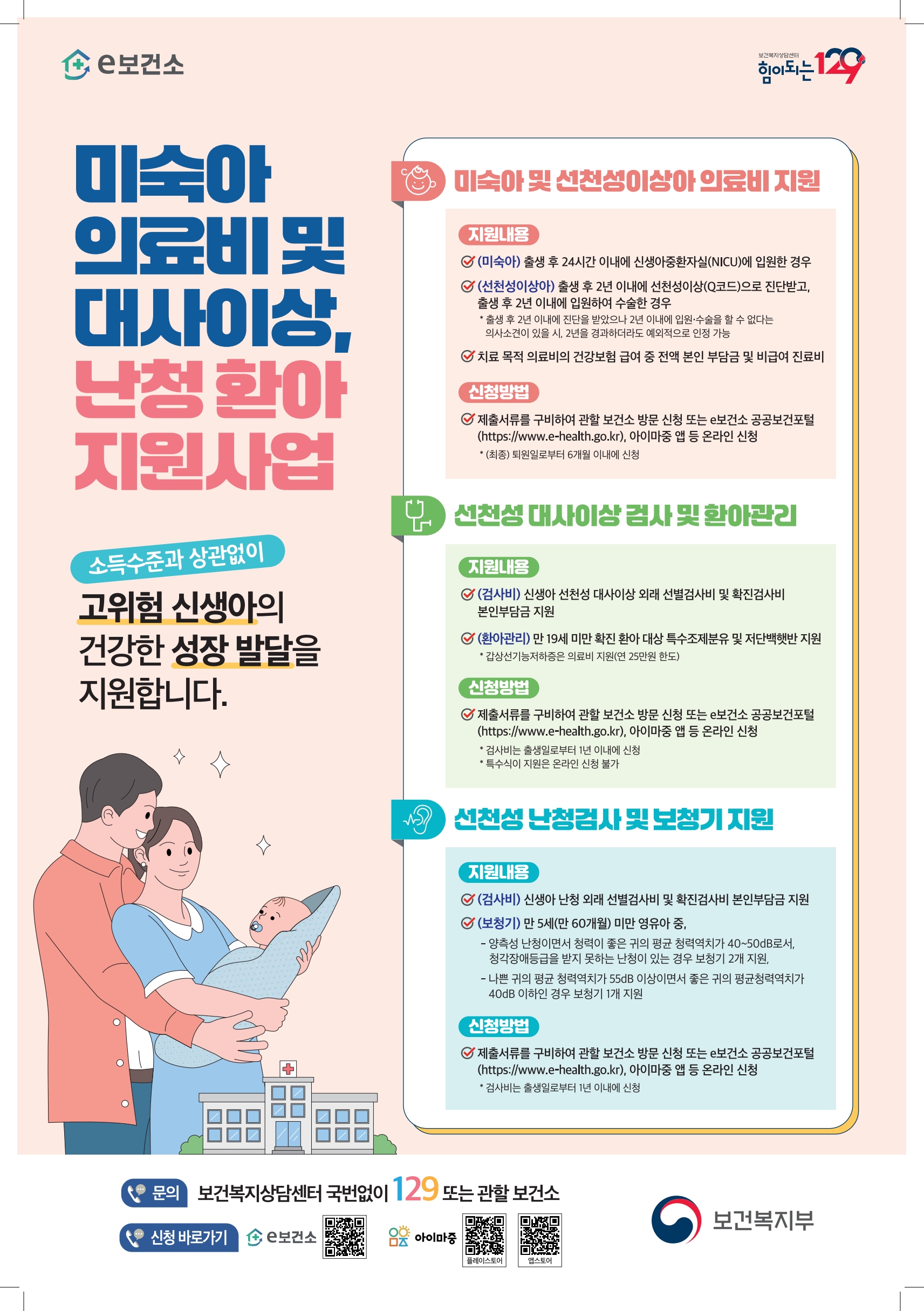 미숙아 의료비 및 대사이상, 난청 환아 지원사업 안내