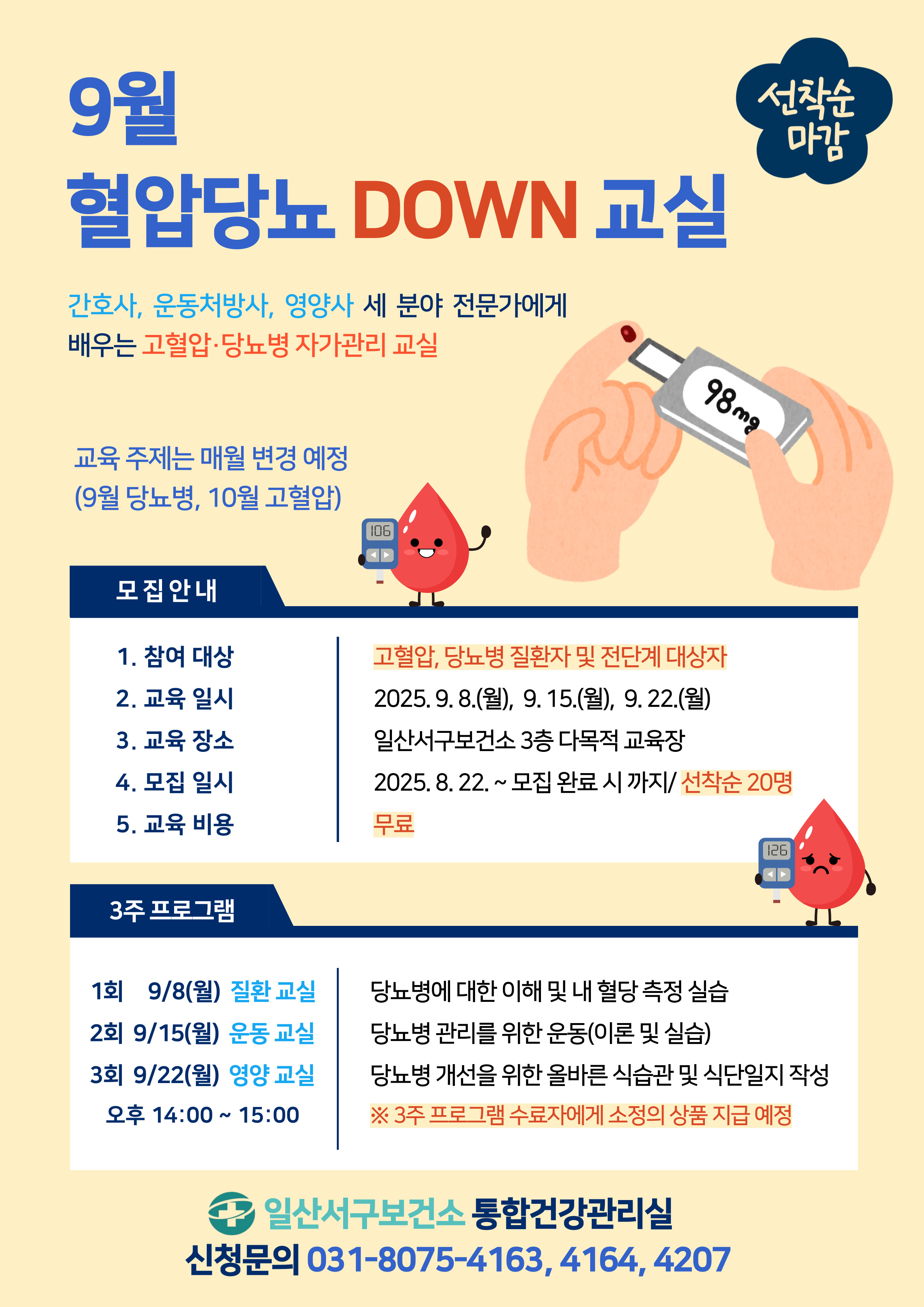 9월 '혈압당뇨 DOWN 교실' 대상자 모집