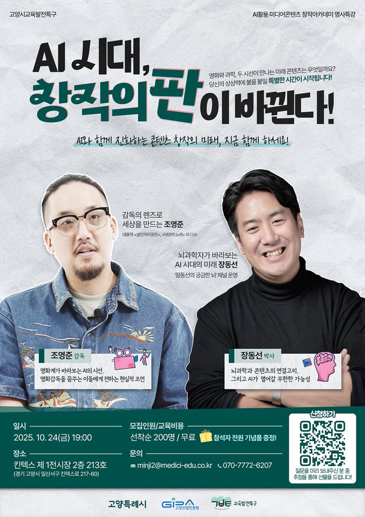 [고양시 교육발전특구] 2025년 AI 활용 미디어콘텐츠 창작아카데미 명사특강(10월 24일) [AI시대, 창작의 판이 바뀐다!]
