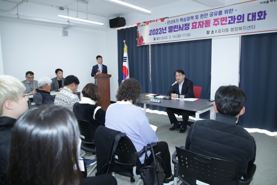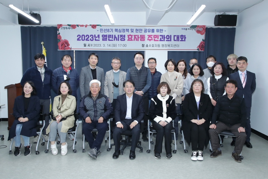 시정현장(사진) 2023년 열린시정 효자동 주민과의 대화 2023.03.15 15:24:43 2023년 열린시정 효자동 주민과의 대화 장소 : 효자동 행정복지센터 (고양시 덕양구) 일시 : 2023년 3월 14일(화) 2023년 열린시정 효자동 주민과의 대화 장소 : 효자동 행정복지센터 (고양시 덕양구) 일시 : 2023년 3월 14일(화) 목록 이전글 2023년 열린시정 행주동 주민과의 대화 다음글 간부회의-동장 소통 간담회 콘텐츠 관리부서 : 언론홍보담당관 언론보도팀 031-8075-2084