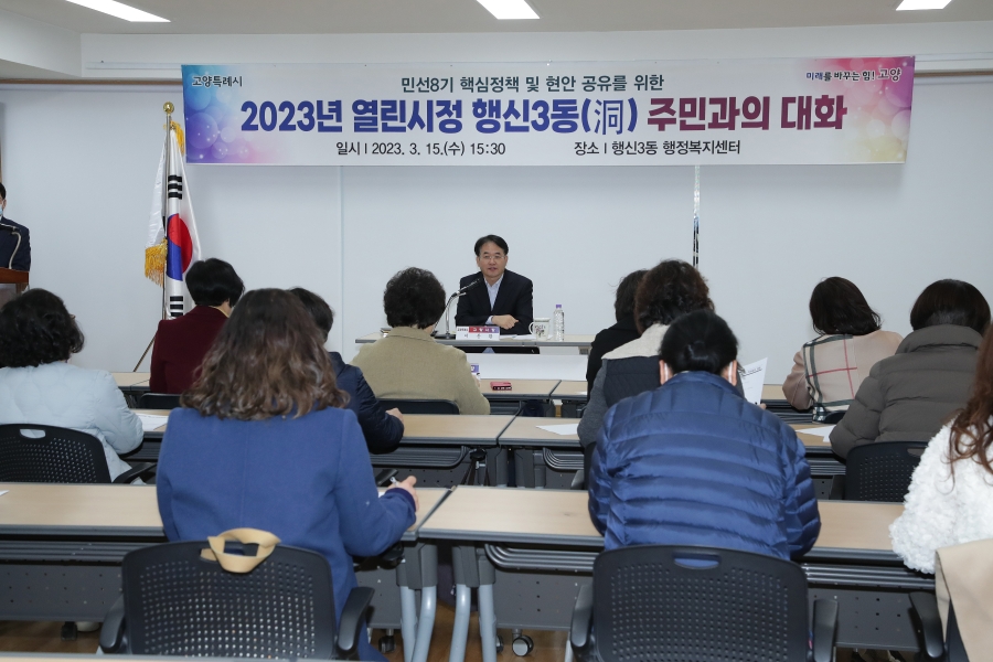 시정현장(사진) 2023년 열린시정 행신3동 주민과의 대화 2023.03.16 17:06:49 2023년 열린시정 행신3동 주민과의 대화 장소 : 행신3동 행정복지센터 (고양시 덕양구) 일시 : 2023년 3월 15일(수) 2023년 열린시정 행신3동 주민과의 대화 장소 : 행신3동 행정복지센터 (고양시 덕양구) 일시 : 2023년 3월 15일(수) 목록 이전글 2023년 열린시정 행신1동 주민과의 대화 다음글 제272회 고양시의회 임시회 제2차 본회의 콘텐츠 관리부서 : 언론홍보담당관 언론보도팀 031-8075-2084