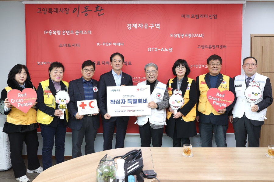 시정현장(사진) 시정현장(사진) 안내 게시판에 게시된 고양시 사진은 “공공누리 3유형 (출처표시+상업적 이용 가능+변경금지)” 조건에 따라 이용할 수 있습니다. 2026년 적십자 특별회비 전달식 2026.01.06 09:41:42 파일 다운로드 파일 다운로드 파일 다운로드 파일 다운로드 파일 다운로드 2026년 적십자 특별회비 전달식 장소 : 고양시청 열린시장실 날짜 : 2026년 1월 5일(월) 2026년 적십자 특별회비 전달식 장소 : 고양시청 열린시장실 날짜 : 2026년 1월 5일(월) 고양시청이(가) 창작한 [ 시정현장(사진) ] 저작물은 공공누리 "출처표시+변경금지" 조건에 따라 이용할 수 있습니다. 목록 이전글 고양청년회의소 신년교례회 다음글 2026년 신년 조찬기도회 콘텐츠 관리부서 : 언론홍보담당관 언론보도팀 031-8075-2084