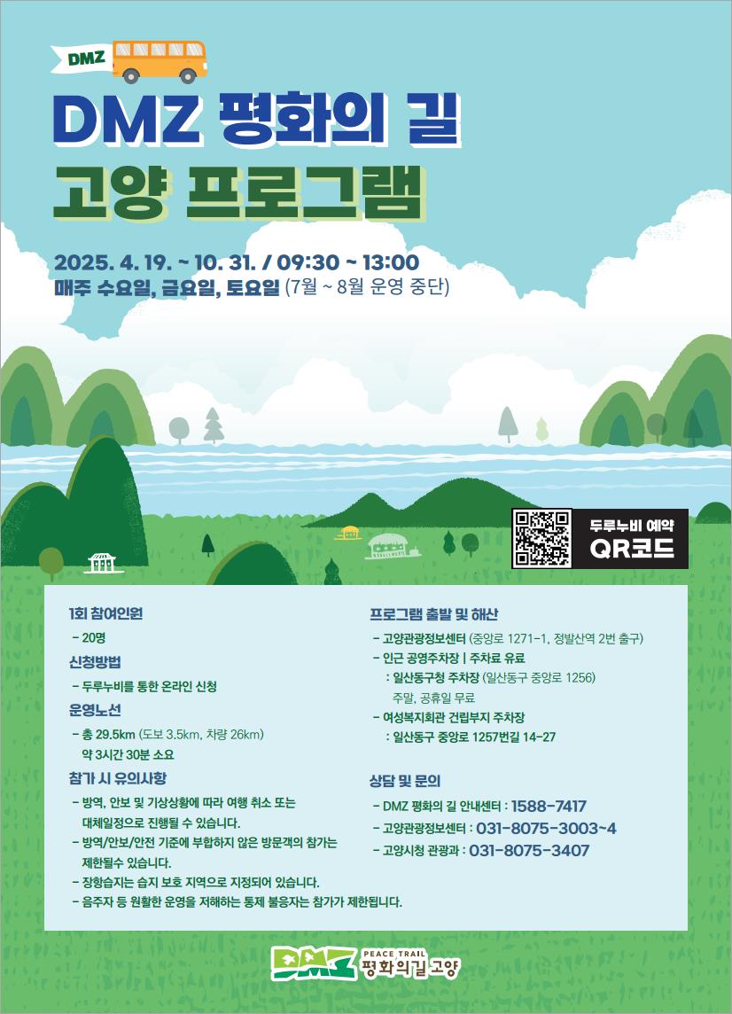 - 문의처dmz평화의길 안내센터: 1588-7417 고양관광정보센터: 031-8075-3003~4 고양시청 관광과: 031-8075-3410