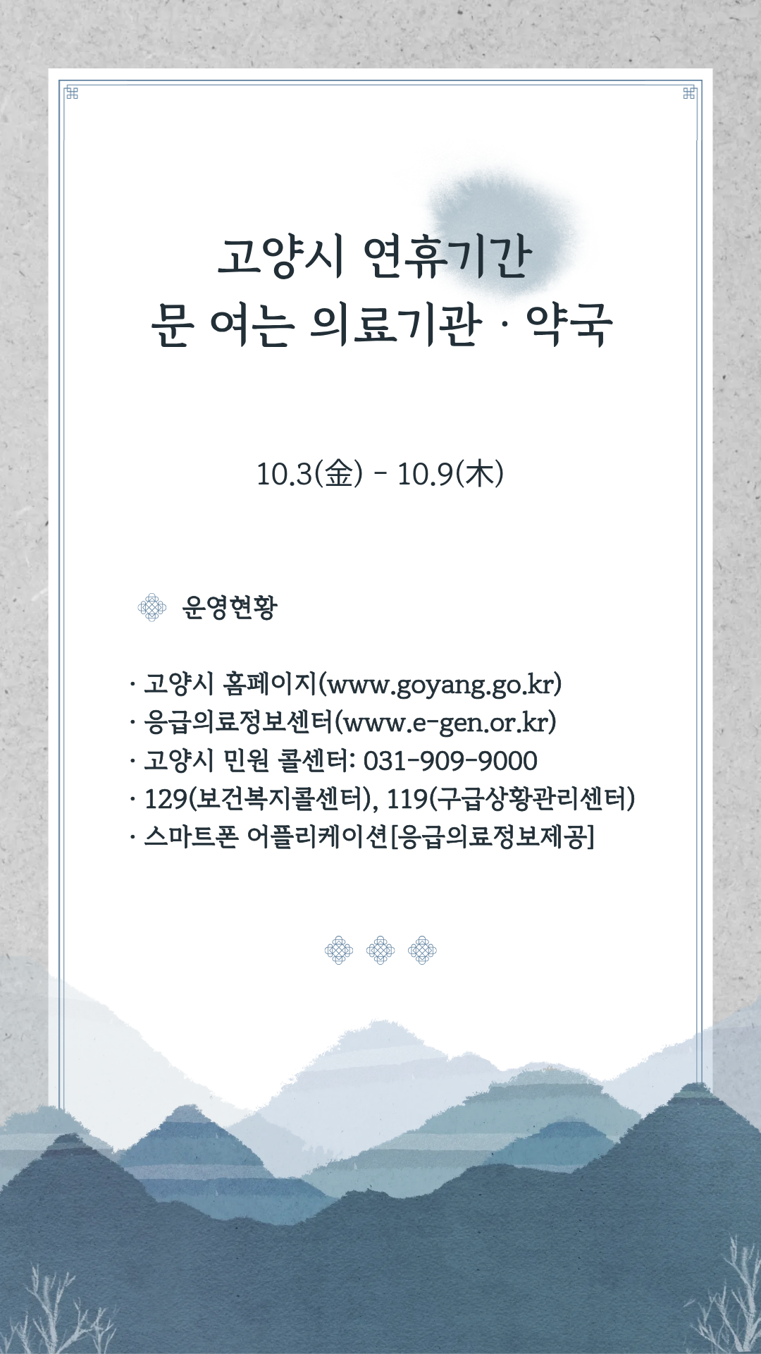 2025년 고양시 추석 연휴 문 여는 의료기관 및 약국 안내